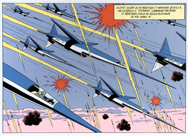 Le X-59 n’est pas un prototype de ligne commerciale mais un laboratoire volant, entièrement taillé autour du bruit. Son fuselage effilé, dominé par un nez très long – son allure longiligne n’a rien à envier à l’espadon (SX1) de Blake & Mortimer – qui représente près d’un tiers de la longueur totale (environ 30 m), vise à « étaler » les ondes de choc pour éviter la classique onde en N. Le moteur (un F414 dérivé d’avions de combat) est positionné au-dessus de l’arrière du fuselage pour lisser l’intrados2. Particularité marquante : le cockpit n’a pas de pare-brise avant. Le pilote s’appuie sur un système de vision externe (caméras haute définition et affichage 4K) qui restitue la vue frontale avec des superpositions de données.